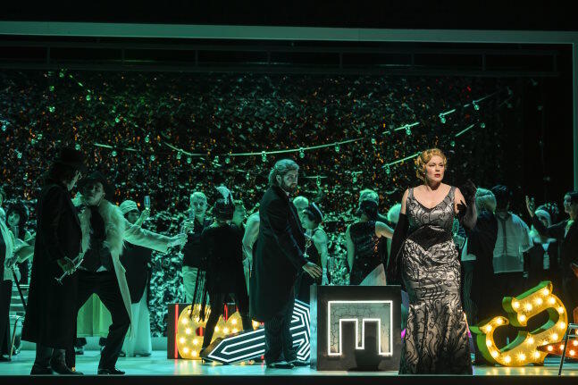 Der österreichische Komponist hat in seinem ersten, 1912 uraufgeführten Erfolgswerk mit eigenem Libretto allerdings die Akzente verschoben: Obwohl die Oper nach jener Vision benannt ist, die den Komponisten Fritz in die Ferne zieht, wird die verlassene Grete zur starken, allen Widernissen trotzenden Hauptfigur. Zunächst flieht sie als Opfer des egoistischen Mannes und der hemmungslosen Heimatgemeinschaft in die Wälder, entwickelt sich als Ausgenutzte in einem zweifelhaften Etablissement zum Star der Szene und übersteht schließlich noch den Niedergang des scheiternden Fritz. Es ist eine große Sopranpartie, die Schreker hier geschaffen hat, und Susann Vent-Wunderlich wird ihr in allen Facetten gerecht. So muss sie sich im ersten Akt bisweilen heroisch mit einem Heldentenor und dem bestens präparierten Chor messen, ehe sie auf Gretes Fluchtweg mit den feinen Tönen der träumerischen Naturverehrung berückt. Ihre Star-Auftritte in der Varieté-Welt des zweiten Akts gelingen ebenso überzeugend, nie hat man in der knapp dreistündigen Aufführung die Furcht, die Sängerin müsse forcieren. Kein Wunder, dass ihr der größte Anteil des einhelligen Schlussapplauses gebührt.