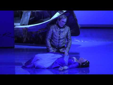 Das liegt vor allem an von Webers Musik, die großenteils recht uninspiriert wirkt und nur ganz gelegentlich originell. Hendrik Vestmann musiziert mit dem Sinfonieorchester Münster und dem Opernchor sehr ordentlich und klangschön, vermag aber kaum Funken aus der Partitur zu schlagen, das Musikalische bleibt oft belanglos. Auch sängerisch ist diese Inszenierung allenfalls mittelprächtig: Wolfgang Schwaninger als Ritter Hüon, steiflich in all seinen Bewegungen, klingt angestrengt, stemmt die Töne statt sie fließen zu lassen; Maida Hundeling als Kalifentochter Rezia lässt ihren messerscharfen Sopran krachen, dass es schmerzt. Außer in ihrer überzeugend gelungenen Trauerarie („Trau’re mein Herz“) kennt sie nur eine dynamische Einstellung: das Dauerfortissimo, das nirgends zu einem der übrigen Sängerinnen und Sängern passt. Nicht zu Eva Trummer (Fatime), nicht zu Lucie Ceralova (Puck). Eine große Ausnahme: Tenor Fritz Steinbacher! Seit 2008/2009 Ensemblemitglied in Münster, hat er eine erstaunliche Entwicklung gemacht und glänzt sowohl darstellerisch als auch sängerisch in seiner Rolle als Oberons Knappe Scherasmin. Eine frische, helle, bewegliche Stimme mit stabiler, sicherer Höhe, als Schauspieler mit durchaus komödiantischem Talent – eine Idealbesetzung! Tenorkollege Jeff Martin als Oberon kann da nicht ganz mithalten.