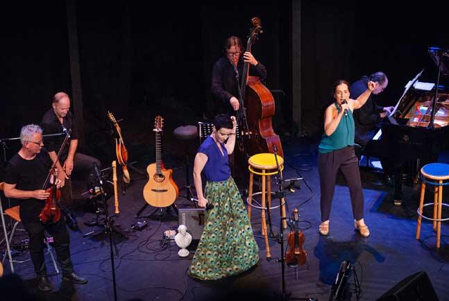 Betont die Blockflöte den Beginn der Liebe, geben später Kontrabass, Saxophon und Bratsche den melancholischen Ton vor. Doch immer ergeben Musik und Gesang, Rezitation und szenische „Übersetzungen“ der Texte in Bilder eine in sich geschlossene Welt – eine Welt kunstvoll überhöhter Menschlichkeit. Wenn sich dann die Truppe, kurz vor der Pause, in grandiose Jazz–Soli hinein steigert, ist der musikalische Höhepunkt erreicht.