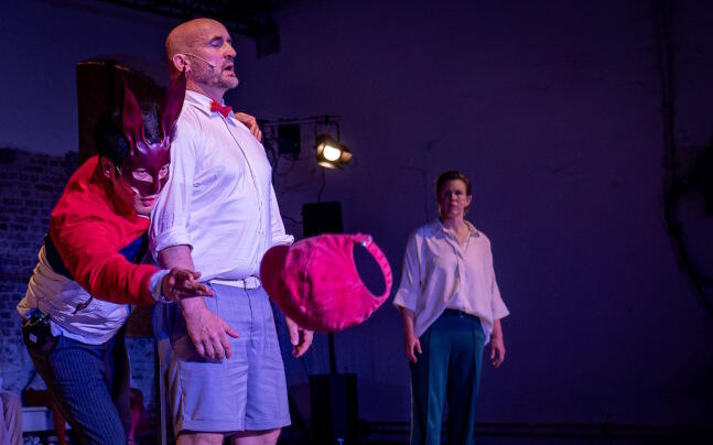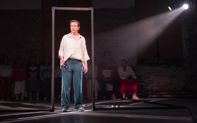 Im schmucklosen Raum der Alten Farbwerke sind zwei Stuhlreihen fürs Publikum zum großen U gestellt. An der Wand gegenüber sitzen die Akteurinnen und Akteure in scheinbarer Alltagskleidung. Die meisten bilden den Chor: die Stimme einer trägen, erschöpften Masse, die statt Stellung zu beziehen eher ein Echo bildet und schließlich verstummt. Dazwischen drei Frauen, die in eindrucksvollen Spielszenen das Leben und Leiden einer von psychischer und physischer Gewalt bedrohten Frau präsentieren. In der Hauptrolle eindrucksvoll Julia Dillmann. Als mögliche zukünftige Schicksalsversionen Azizè Flittner und außerdem - mit tänzerischen Einlagen - anrührend Anna Magdalena Beetz. Dann noch zwei Männer: Alexander Steindorf, der im Sakko den gewaltbereiten Ehemann und mit roter Kappe das heranwachsende Kind spielt und Paul Jumin Hoffmann, der die anderen bösen männlichen Einflüsse gibt. Von der Seite begleiten Sandra Zawada und Benjamin Herrera das Geschehen mit elektronischen Klängen und Live-Geräuschen.