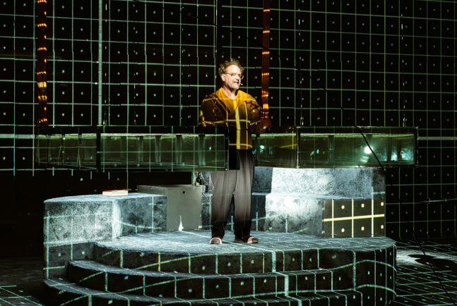 McNeal thront zu Beginn des Abends auf einer Sitzgruppe, die mit Samt überzogen ist. Fransenvorhänge bestimmen das Bühnenbild, auf die an wechselnden Stellen Lichtstreifen projiziert werden. Immer wieder laufen Textzeilen über die Umrahmung der Bühne.