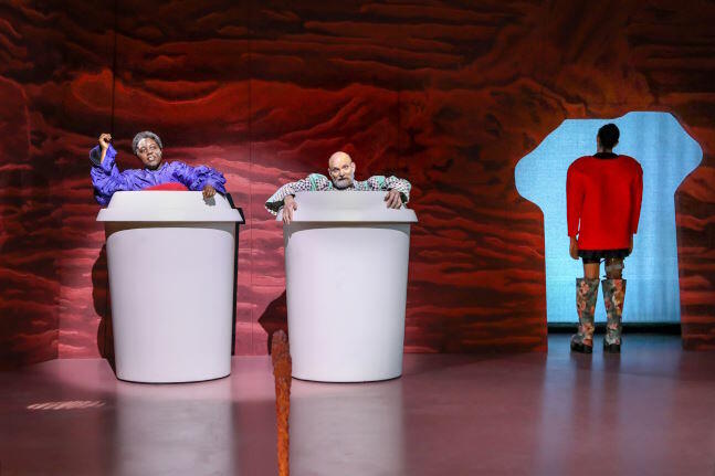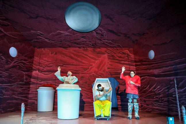 Trotz kurzer Auftritte überzeugen auch Maddy Forst und Mathias Znidarec in ihren an Coffee-to-go-Becher erinnernden Tonnen als Nell und Nagg mit prägnanten Szenen. In den harlekinesken Kostümen von Florian Buder wirken die Beiden in ihren Eimern wie Puppen aus dem Kasperletheater und unterstreichen mit ihrer künstlichen Bewegung, Sprache und Sprechweise, dass sie nur traurige Abbilder ihrer früheren Selbst sind - klammernd an Vergangenes, unfähig und ohne Möglichkeit, es wieder aufleben zu lassen.