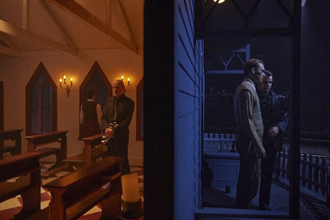 Kein Hahn kräht. Es scheint, als sei fast immer Nacht. Es regnet oft. Es ist starker Dauerregen, kein Sturm, kein Niesel - die Art von Regen, die aufs Gemüt geht. Die Menschen in diesem Dorf - noch sind wir in Akt 1 - wirken deprimiert. Sie bewegen sich in Zeitlupe, sie lachen nicht, sie interagieren kaum. Lavinia Novak geht ins Büro. Wenn sie sich nicht mit den immergleichen Trinkepäckchen tröstet, wirkt sie ultradepressiv. Sie liest ein Buch über Eifersucht. Ein Buch über Einsamkeit erschiene passender: Schließlich redet keiner mit keinem. Andreas Beck wird an seinem verwundeten Bein verarztet - oder bezahlt er gerade Prostituierte? Mit unbewegtem Gesicht schaut er in die Welt hinaus. Im Fenster des Nachbarhauses sitzt die schwarz gekleidete Anke Zillich - beklemmend emotionslos, wie einem Hopper-Gemälde entsprungen. Auch Anja Lais taucht einmal im grauen Morgenmantel in dem Fenster auf und blickt ihren Besucher an wie eine Frau, die vom Leben nichts mehr erwartet. Vor der Kirche steht unbeweglich der spillerige, ebenfalls ganz in Schwarz gekleidete Uwe Rohbeck wie ein misstrauischer oder missgünstiger Galgenvogel. Eine Frau betastet ihre nackte Brust - ihre mutmaßliche Angst vor der Krankheit kann sie niemandem anvertrauen. Ein alter Mann bricht auf der Straße zusammen. Die Posaunen von Jericho erklingen. Langsam wird Uwe Schmieder entkleidet; seine Leiche wird mehr schlecht als recht mit einer billigen Plastikplane bedeckt und bleibt unbeachtet.
