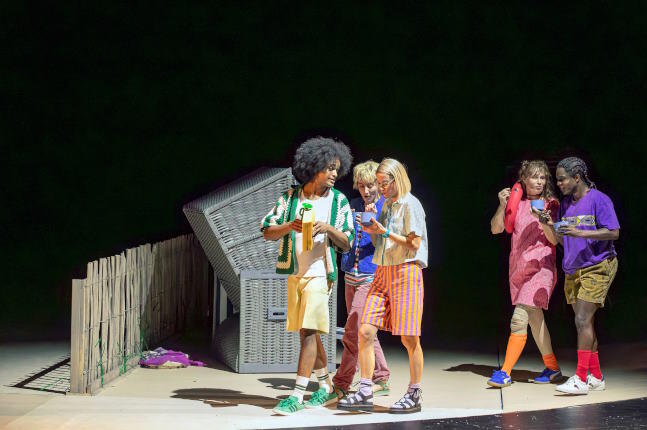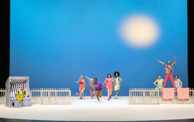 Nach eindrucksvollen Spiel-, Traum- und Gesprächs-Szenen wird das herrliche Domizil noch einmal kräftig besungen: „Wir sind zuhause hier/Erwachs‘ner raus mit dir!“ bevor die gesamte Villa Seeseite von der Bühne verschwindet und den Blick freigibt auf einen prachtvollen Sommer-Meeresstrand. Applaus für die Bühne!