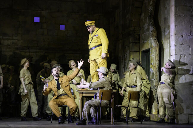 Desdemona ist bekanntlich die Frau des Feldherrn Othello -- beziehungsweise, weil wir bei Verdi sind, Otello. Da Regisseur Leo Muscato die auf Zypern spielende Oper für seine Bonner Produktion aber im Putsch-Jahr 1974 ansiedelt, weist er der weiblichen Hauptfigur gleich noch eine andere Rolle zu und lässt, wenn es geboten erscheint, eine kleine Dunkelkammer in die wuchtige Palastkulisse hineinschieben. Sieht ganz nett aus und hilft bei der zeitlichen Einordnung, hat aber zur Profilierung der Figur wenig Sinn.