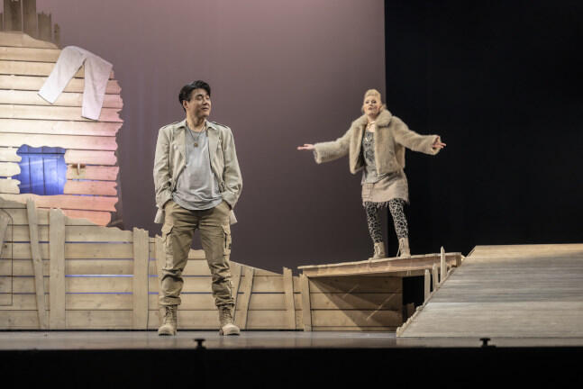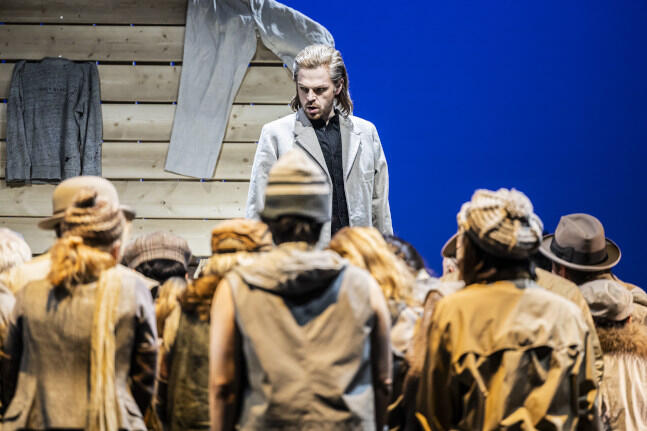 Lotte Kortenhaus als Thirza und Ji-Woon Kim als Mark übernehmen die beiden zentralen Partien – sie mit immer wieder betörender Piano-Kultur, aber auch dynamisch weit ausgreifender Entwicklung; er mit leicht baritonal gefärbtem Tenor, der vor allem zu Beginn des zweiten Aktes mit Bravour einen Riesenmonolog über das Leben, die Liebe und den Tod stemmt, bevor er mit der zu ihm hinzustoßenden Thirza über Fluchtpläne nachdenkt – ganz großartige Musik! Marcel Brunner gibt den Dorfprediger Pascoe, Jonah Spungin den Leuchtturmwärter Lawrence; Johanna Nylund schlüpft in die Rolle der hier ziemlich prollig angelegten Avis, der Tochter des Leuchtturmwärters, die selbst mal in Mark verliebt war; Jaime Mondaca Galaz ist Lawrence’ Schwager, Nikos Striezel der Wirt der Dorfkneipe, Franziska Pfalzgraf dessen Kind Jack. Und dann ist da noch der von Francesco Damiani trainierte Opernchor (verstärkt vom Detmolder Extrachor), der große Auftritte zu absolvieren hat und dies mit markanter Durchschlagskraft tut.