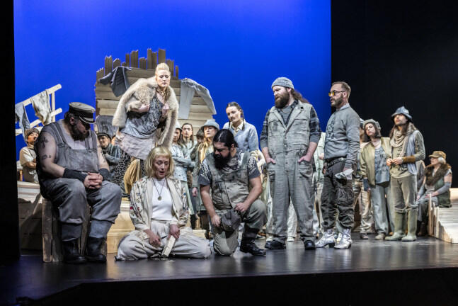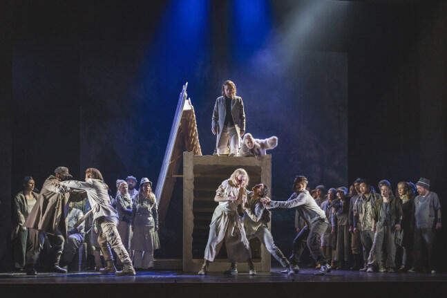 Regie führt bei der Inszenierung im Landestheater Detmold Kirsten Uttendorf, seit Beginn der Spielzeit 2025/2026 Intendantin des für Nordrhein-Westfalen und weit darüber hinaus so wichtigen Hauses. Sie erzählt die Geschichte im besten Sinne geradlinig und schafft einprägsame Bilder, für die Jule Dohrn-van Rossum eine praktikable Bühne bereit stellt: eine karge, mit wenigen Requisiten auskommende Strandgegend. Das Volk auf der Bühne kleidet Claus Stump in Kostüme, wie man sie sich für das 19. Jahrhundert in einem südenglischen Fischerdorf vorstellt.