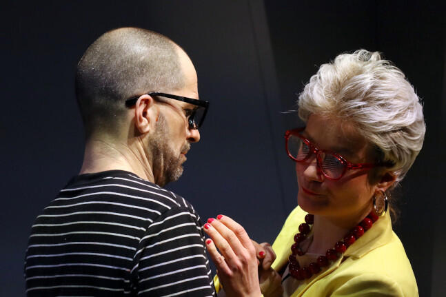 Während also Mutter Rose und Freund Etienne durch die Wohnküche der kleinen Dachgeschosswohnung toben, um Richard noch zur Besinnung zu bringen, pfeffert Claire wie von Sinnen den Salat fürs gemeinsame Essen aus der Tüte in die Schüssel. Die Schauspielerin Rosana Cleve tut das auf der Bühne des Wolfgang-Borchert-Theaters in Münster mit einer solch brutalen Inbrunst, dass das Publikum auch um das Schicksal ihres Gatten fürchten muss. Und wenn später dunkle Gedanken bei den drei Fassungslosen aufkeimen, betont Claire zwar: „Wir sind ja keine Monster!“ Aber auf Rosana Cleves Gesicht spiegelt sich pure Mordlust.
