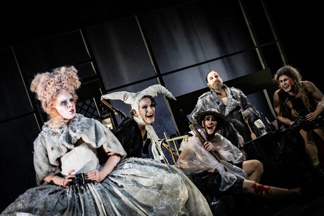 Daniel Kehlmanns Roman, mehrfach preisgekrönt, erschien 2017. 2018 brachte der damalige Intendant des Schauspiels Köln Stefan Bachmann eine Bühnenversion des Werkes zur Aufführung. André Kaczmarzyk war sechs Jahre festes Ensemblemitglied am Düsseldorfer Schauspielhaus. Seit einiger Zeit arbeitet er als freier Regisseur, auch in Düsseldorf. Jetzt kam seine Bühnenfassung des Romans heraus. Sieben Studierende des Düsseldorfer Schauspielstudios der Hochschule für Musik und Theater „Felix Mendelssohn Bartholdy“ Leipzig bringen diesen Bilderbogen, der schlaglichtartig einige Wegmarken der knapp 500-seitigen Vorlage in Szene setzt bzw. Schicksale einzelner Figuren beleuchtet, für die der Krieg zur prägenden Erfahrung wird, auf die Bühne. Wobei alle Darsteller, bis auf Tyll, mehrere Rollen spielen. Kehlmanns Roman ist ein ebenso fiktionaler wie realer Blick auf die Grausamkeiten des Krieges. Der berühmte Narr ist noch ein Kind, als der Dreißigjährige Krieg beginnt. In sechs Bildern erleben wir einen Streifzug durch diese Jahre. Wir sehen den entthronten Prager „Winterkönig“ Friedrich im Exil in Den Haag und erleben, wie der Schwedenkönig ihm jegliche Hilfe versagt. Tyll trifft auf ganz verschiedene Menschen, so auch auf den Jesuiten Kirchner, der Tylls Vater zu Unrechtals Hexer verbrennen ließ. Mittelpunkt der Gauklertruppe ist Tyll (hervorragend Maurice Schnieper) und das Nachbarskind Nele (Ludowika Held). In verschiedenen Stationen verfolgen wir den Lauf der Kriegsjahre, erleben aber auch immer wieder episodenartig Einzelschicksale. So fasziniert Alisa Lien Hrudnik als verängstigter Friedrich. Alle Schauspieler, bis auf Tyll, sind in mehreren Rollen zu sehen. Zu nennen wären noch: Flavia Berner, Jonas Hanke, Anastasia Schöpa und Vincent Wiemer.