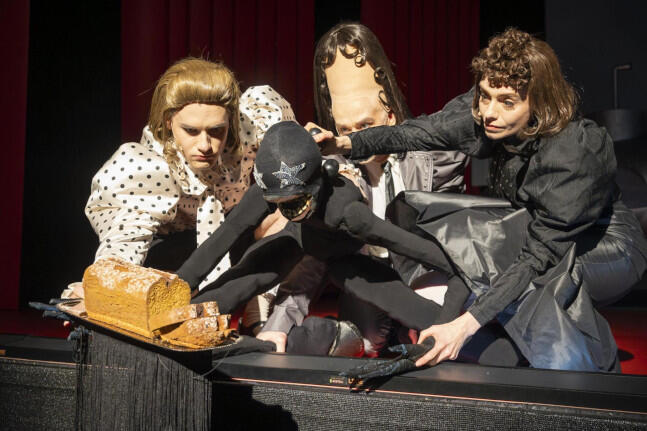 Svealena Kutschkes Stück wurde im Rahmen des 42. Heidelberger Stückemarkts im Jahre 2025 mit dem erstmals vergebenen FIDENA Stückepreis ausgezeichnet. Es gibt eine Version für Puppentheater, die im MiR Gelsenkirchen zur Uraufführung kam, sowie eine „klassische“ Version, deren Uraufführung noch aussteht. Kutschke hat in einer großartigen, höchst originellen Sprache eine absurde, phantasievolle Dystopie formuliert, die mit überbordendem Humor und jeder Menge skurriler Einfälle brilliert. Die gesellschaftlichen, politischen und klimatischen Bedrohungen unserer Welt werden hinter einer leichthändigen, bizarren Bürokomödie versteckt und kommen doch auf gruselige Art zum Ausdruck. So verschraubt wie die Sprache treten auch die grotesk kostümierten Büroangestellten auf. Vor allem Luisa Krause als nervtötend schrille, so naive wie heimtückische Frau Gruber verdreht ihren Körper beim Sprechen kongenial zu den aberwitzigen Formulierungen ihres Textes. Wie sagt eine der Figuren in Kutschkes Stück beim scheuen Blick zum Fenster: „Früher konnte man Sterne sehen.“ Kutschkes „Fußnoten“ in der Inszenierung von Pablo Lawall sind wie kleine Sterne am Theaterhimmel.