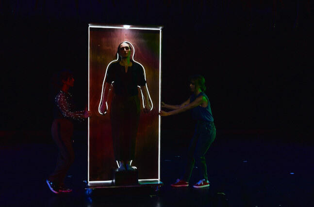 Aber es gibt auch Momente der Hoffnung und Poesie: Eine wunderschöne, nur mit den Händen ausgeführte Choreografie geht über in ein angedeutetes Ballspiel, das wirkt, als wollten die Schauspielerinnen en Mond oder die Sonne vom Himmel holen. Am Ende dieses nur mit Hilfe von Scheinwerfern dargestellten Spiels fängt eine der Performerinnen ein Licht. Ein trauriges Lied, das eine verlorene Liebe besingt, könnte auch eine Metapher für die Liebe zur verlorenen Heimat sein. Choreografien, Bilder und Musik von großer Schönheit wechseln sich ab mit kargen, aber eindringlichen erzählerischen Szenen, in denen die Schauspielerinnen fast bewegungslos an der Rampe stehen.