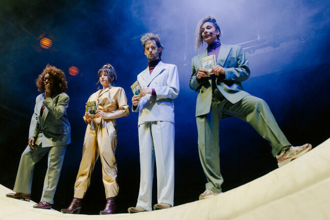 Das grandiose Musiktheater beginnt mit dem von Puk Brouwers engagiert vorgetragenen, als „Manosphere Ballade“ bezeichneten Song im Stil Frank Sinatras über Männlichkeit. Dieses und all die folgenden Jingle-artigen „Book-Songs“, die humorvoll durch die Kapitel des Buches führen, wurden eigens für diesen Theaterabend von Moritz Bossmann und Kristina Koropecki komponiert, wobei die Songtexte gemeinsam mit dem Ensemble entstanden. So etwa der „Mea Culpa“-Song, der in einer an Tom Waits erinnernden Nummer die Figur des Ghostwriters Tony Schwartz in den Blick nimmt, der - obwohl er mit dem Buch reich wurde - heute erklärt, dass er sich wie Dr. Frankenstein fühle, der „ein Monster erschaffen“ habe. An ganz klassische Musicals erinnern Songs wie „How many zeros are in a billion“, bei dem Mona sportlich elegant auf Rollschuhen über die Bühne flitzt. Rasant setzt Stacyian mit ihrer jamaikischen Dancehall-Rap-Nummer „Kill them with Kindness“ der Trump’schen Brutalität einen Aufruf zur Freundlichkeit entgegen. Und schließlich - in der Zeit weit ins Heute reichend - tritt da noch der „Trump-Selenski-Chor“ auf, der im Stil von Philipp Glass‘ Minimal Music das entgleiste Gespräch zwischen Trump, Vance und Selenski in Musik packt, wobei sich Trumps Satz: „You’re gambling with the lives of millions of people“ auf grausame Weise ganz aktuell gegen ihn selbst richtet.